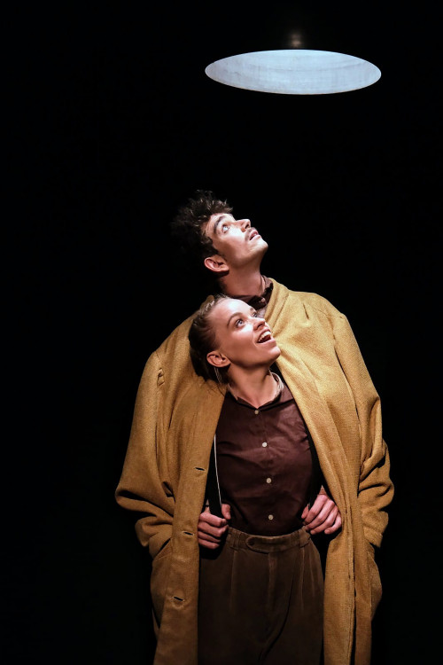Was wäre, wenn zwei Menschen nicht nur die Welt retten müssen, sondern auch noch in einem einzigen Mantel stecken? Gar nicht so leicht! Die beiden haben die Aufgabe, Cicalas Tango zu spielen, das Musikstück, mit dem sie die Wärme herbeirufen und dem Winter ein Ende bereiten. Mithilfe visueller Illusionen, Musik, Klang und Rhythmus und einem wandelbaren Bühnenbild nimmt das Duo die Komplexität und Unbeholfenheit menschlicher Beziehungen unter die Lupe.