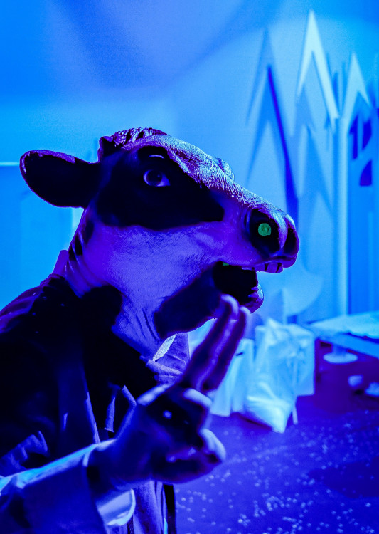 Es kommen Tiermasken zum Einsatz, die sich die Spieler*innen über den Kopf ziehen.